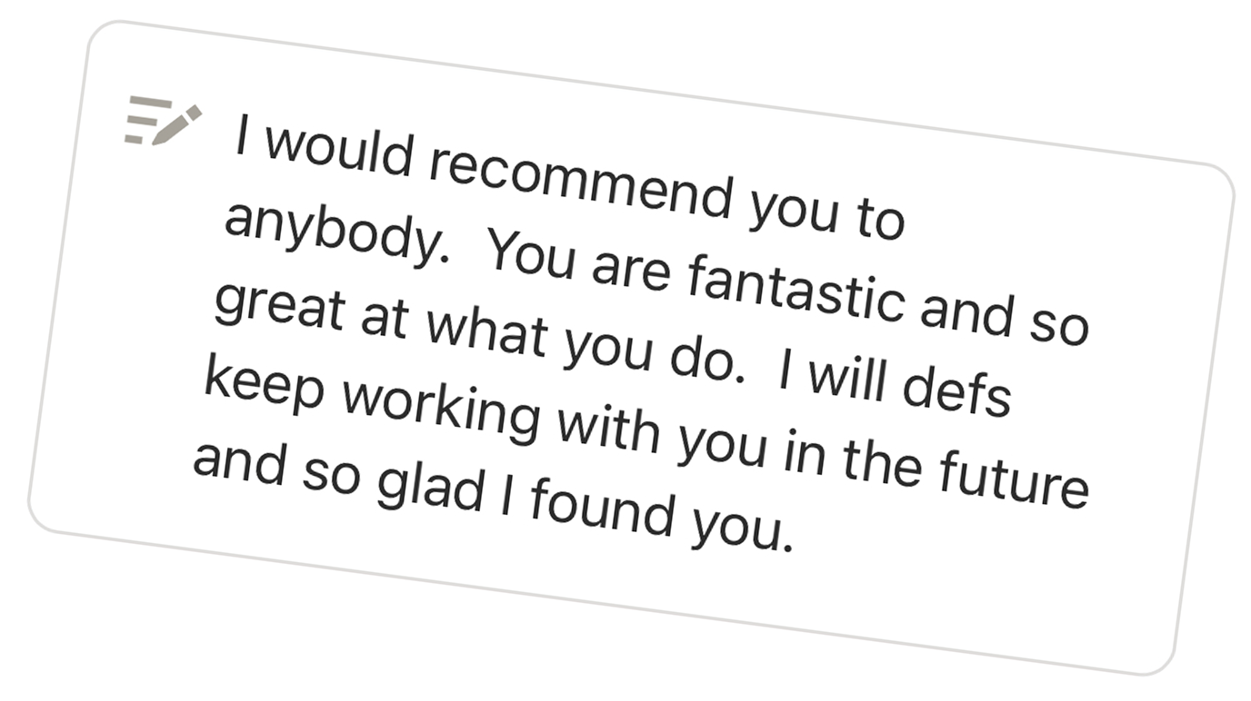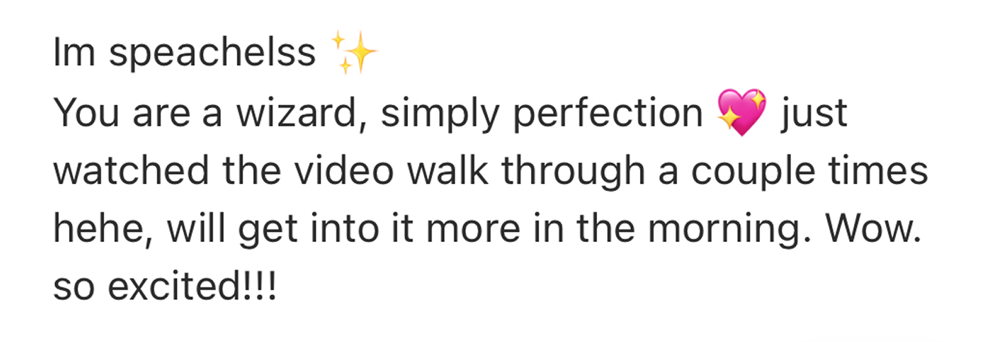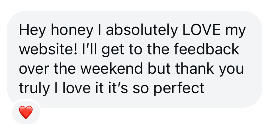 You’ll receive a detailed Google Doc to guide you through writing your website copy. If you’d like me to take it off your hands, you can add done-for-you copywriting for $1,500 +GST.
